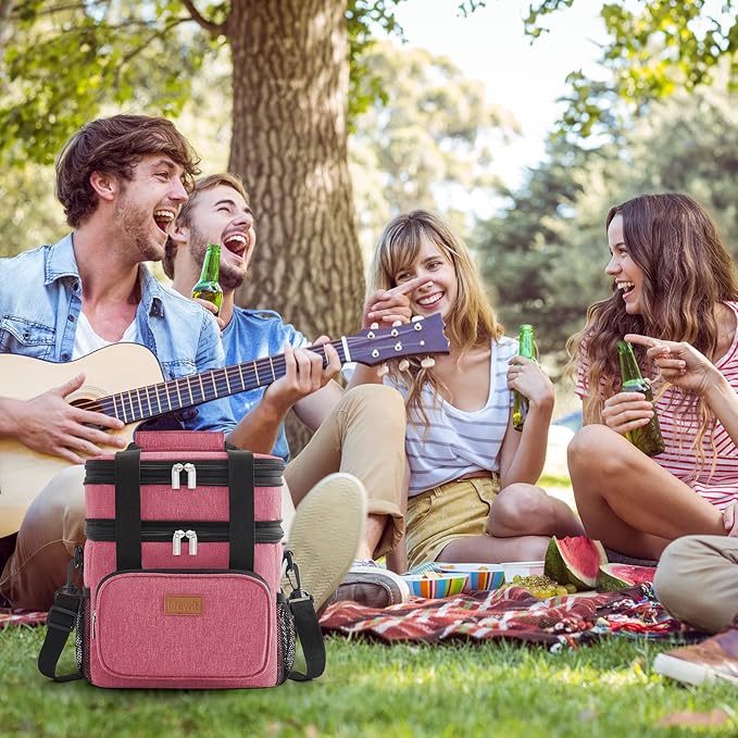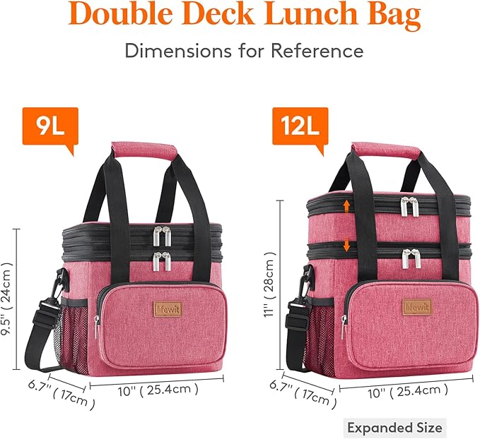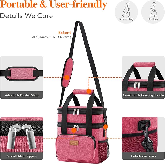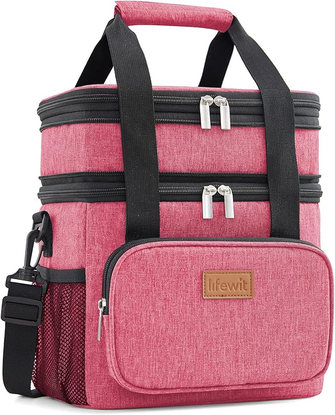 Lifewit Lunch Box for Men Women Double Deck Lunch Bag, Large Insulated Soft Cooler Bag, Leakproof Soft Meal Prep Lunch Tote with Shoulder Strap for Adults for Work/Flight/Travel, 12L/16Can, Pink