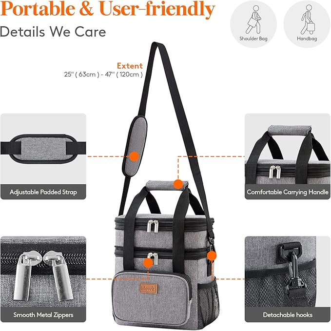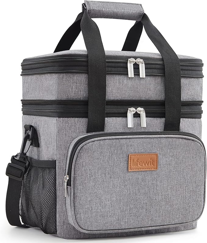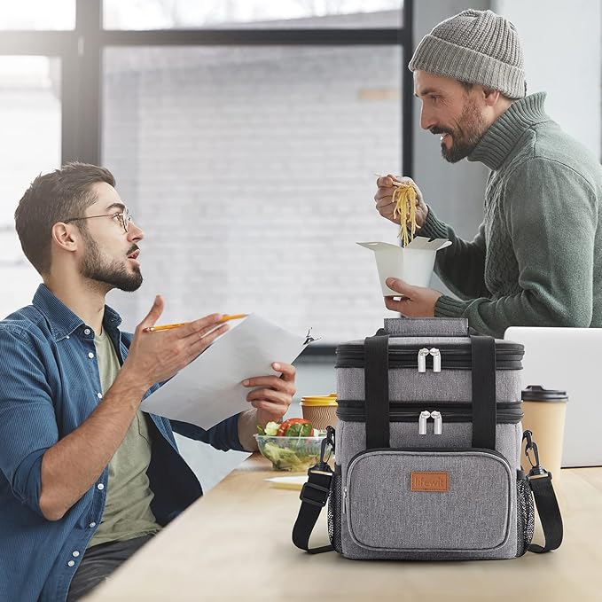 Lifewit Lunch Box for Men Women Double Deck Lunch Bag, Large Insulated Soft Cooler Bag, Leakproof Soft Meal Prep Lunch Tote with Shoulder Strap for Adults for Work/Flight/Travel, 12L/16Can, Grey