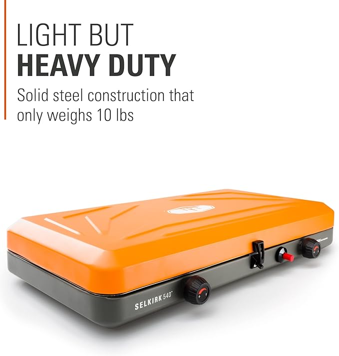 GSI Outdoors Selkirk 540+, Portable Outdoor Camping Stove, 2-Burner Propane Grill, 14,000 BTU High-Output Adjustable Burners, Integrated Igniter and Wind Guards