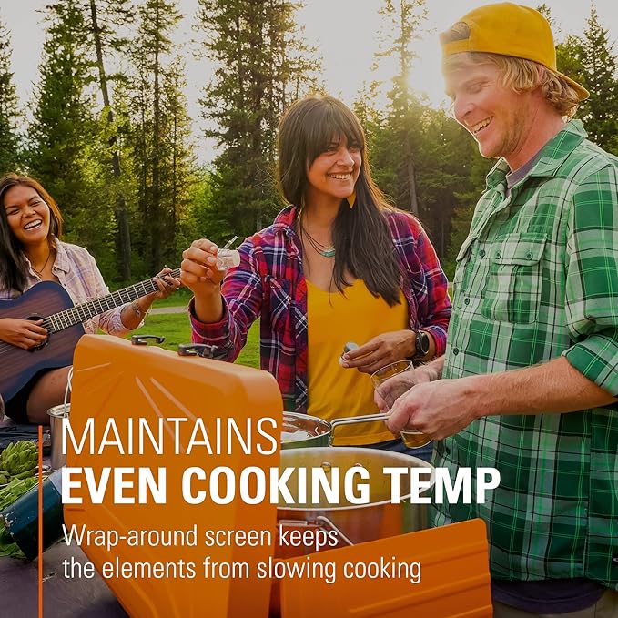 - Wraparound windscreens prevent gusts and inclement weather from slowing your cooking to a crawl; Screens fold out of the way for fair-weather cooking or to use with larger pots
