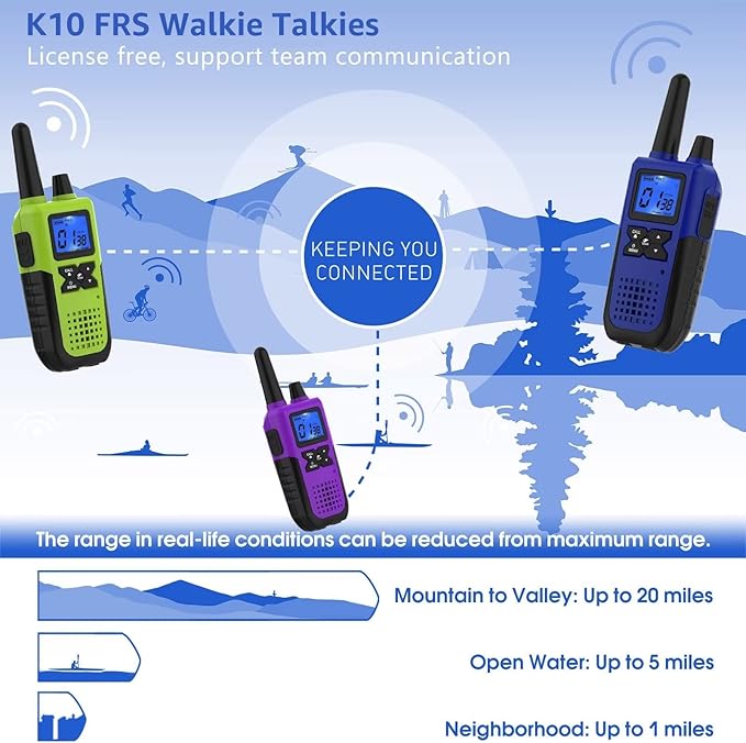 - 【Clear Conversations, Longer Distances】 : Say goodbye to communication barriers, and hello to clarity. The walkie talkies for adults boast an impressive long-range transmission and better sound technology, keeping you connected over vast distances when it matters most, ensuring uninterrupted, crystal clear sound even in noisy environments. Great for family & team engaging in various indoor or outdoor activities such as coordinating a festival or hiking through the mountains