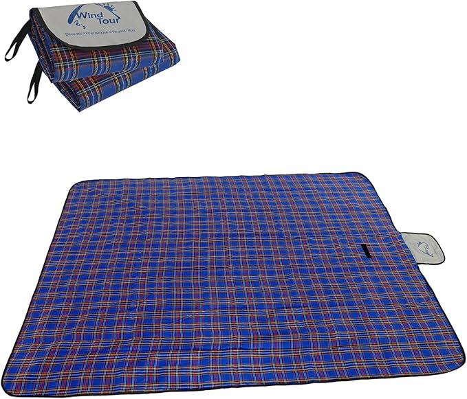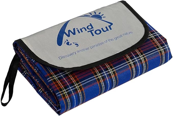 Wind Tour Family Outdoor Waterproof Durable Picnic Blankets with Carry Strap,Foldable 50×70.9 inch Sandproof Picnic Floor Mat for Kids Playground Camping Park Hiking Grass Travelling (2, Blue)