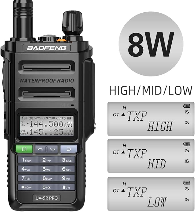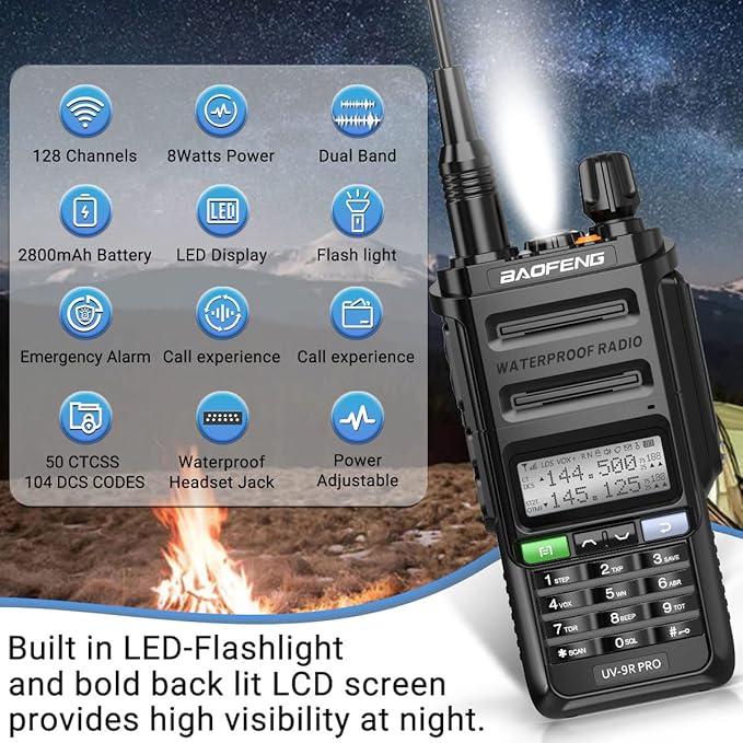 - IP67 Waterproof Features:9R Plus upgrade version,The Two Way Radio with better waterproof and dustproof capabilities(Not diving),and can meet the needs of outdoor sports,camping,mountaineering etc in the bad weather,which ensures the reliability of the walkie-talkie in wet environments.FFC ID: 2AJGM-UV9RPRO