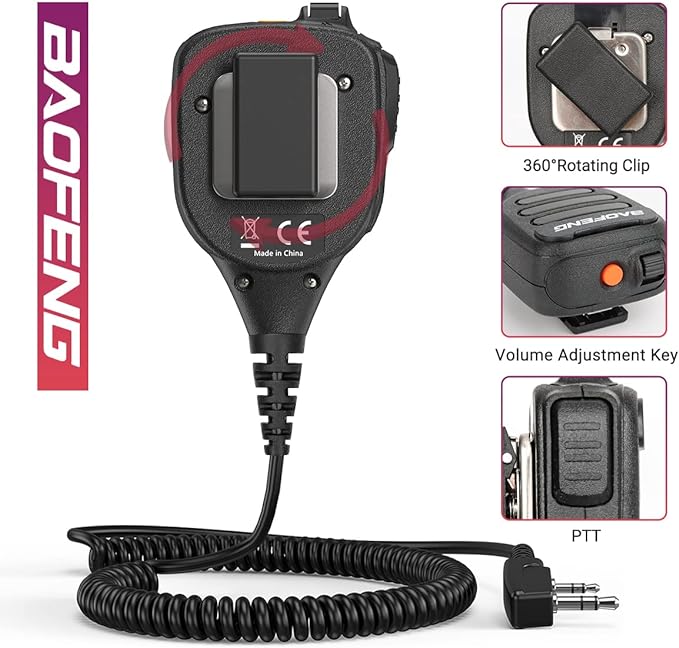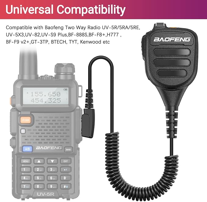 - 【Baofeng universal walkie talkie accessories】Microphone speaker: Distance between two pins: 11mm. Compatible models: BAOFENG AR-152 UV-5R、UV-82、BF-888S、BF-F8+、UV-S9 PLUS、BF-F9 V2+、GT-3TP, Kenwood, Lunton, PUXING, WEIERWEI, Wouxun, etc.