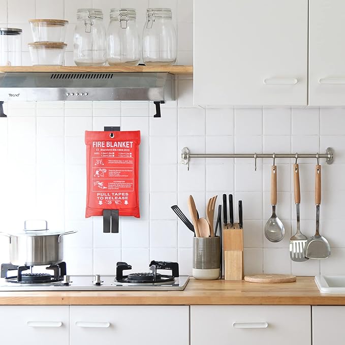 - 【EASY TO STORE】Portable fire blankets do not take up a lot of storage space and never expire. you can hang kitchen fire blanket discretely in a cabinet near your cooktop, on a garage wall, near your BBQ grill, or even take one along when camping.