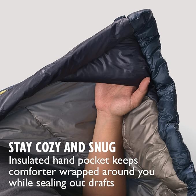 - DO-IT-ALL 3 SEASON QUILT: Have the best of quilt camping with the familiar feel of a sleeping bag – center zip for fully open option, hand pockets to pull covers across while in use, self sealing footbox
