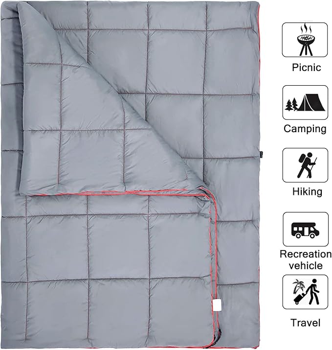 - Fluffy and Machine Wash: Compared with other camping blankets, we have increased the filling content to ensure that the down filling is fluffy and full; And through special sewing skills, the filling will not run around after cleaning