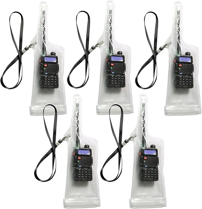 Lsgoodcare 5Pcs Portable Two Way Radio Waterproof Rainproof Bag Case Pouch White Compatible with Motorola Kenwood Midland UV 82 BF 888S UV-5R Walkie Talkie Radio