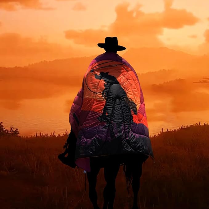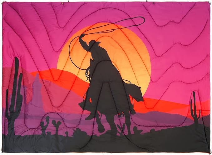 Camping Blanket, Puffy Waterproof Travel Blanket, Warm Cozy Picnic Blanket, for Outdoors, Travel, and Mountain.(West Cowboy, 78" x 56")