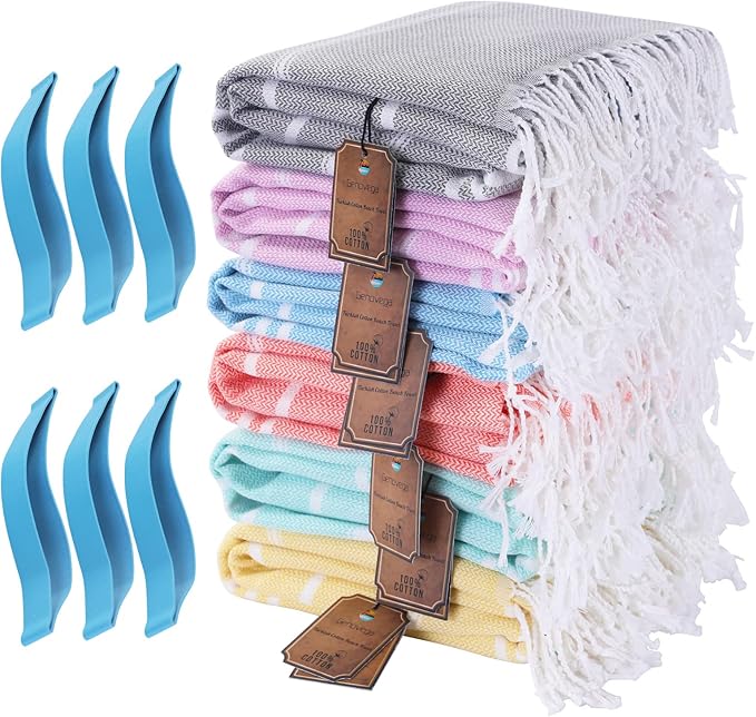 Genovega 6 Packs Cotton Turkish Beach Towels Set Bulk Oversized Extra Large Quick Dry Sand Free Bathroom Pool Swim Towel for Adult Travel Essentials Cruise Accessories Must Haves Clearance Multipack