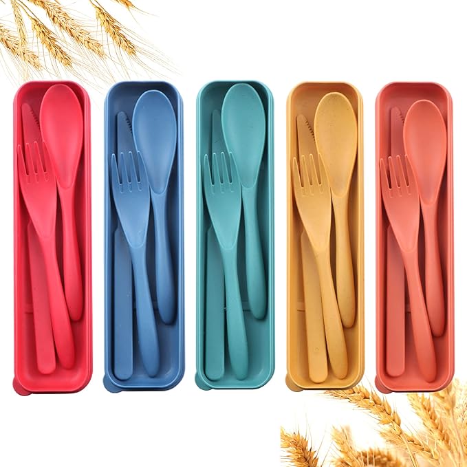 - WIDELY USED - Wheat straw material is more lightweight to carry, you can easy to put them in bento box, backpacks and other bags. In addition to daily use, the portable dinnerware sets are also perfect for camping, travel, picnic and working lunch.