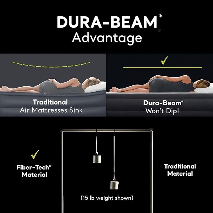 • DURABILITY – Unlike traditional air beds that tend to sink or dip over time, our 10" Dura-Beam Air Mattresses are designed with bottom ring stability to withstand the weight of the sleeper without sagging or losing its shape