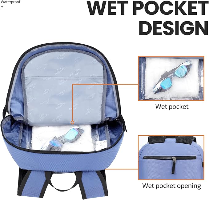- Upgraded Wet Pocket Design: Venture Pal backpack stands out with more humane design for easy and convenient use. One waterproof wet pocket is added to the main compartment, a zipper on the back of this backpack which led to the internal wet pocket, to better separate sweaty clothes, towels or other personal things after swimming or taking exercise