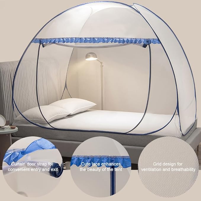 Mengersi Mosquito Net Tent for Bed,Pop-Up Bed Canopy with Net Bottom,Mosquito Netting Bed Tent for Kids Girls Boys,Bed,Suit for Indoor Outdoor (Full/Queen, Blue)