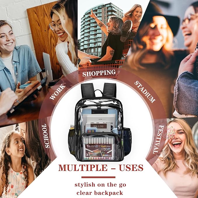- Multiple Uses - Lightweight transparent backpack Can be used in different occasions, for work, stadium, library, museum, short trip, sporting, picnic, concert and carnivals etc; fully meet your daily needs