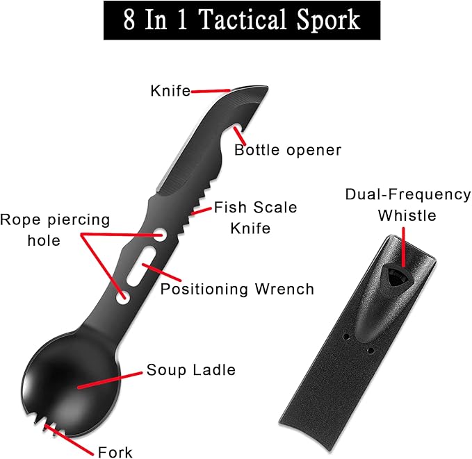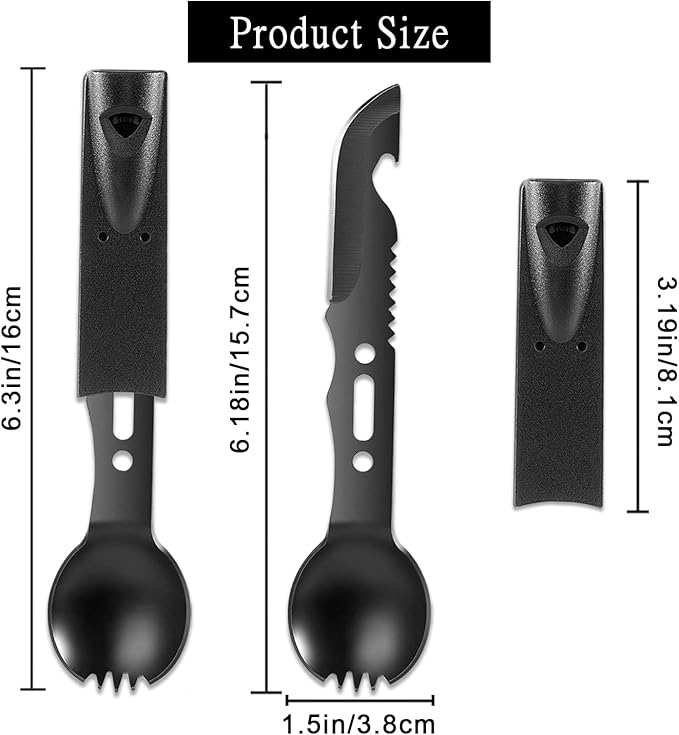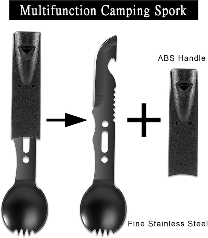 Multifunction Camping Flatware,8-In-1Camping Utensils for Hiking Camping Backpacking(Black)