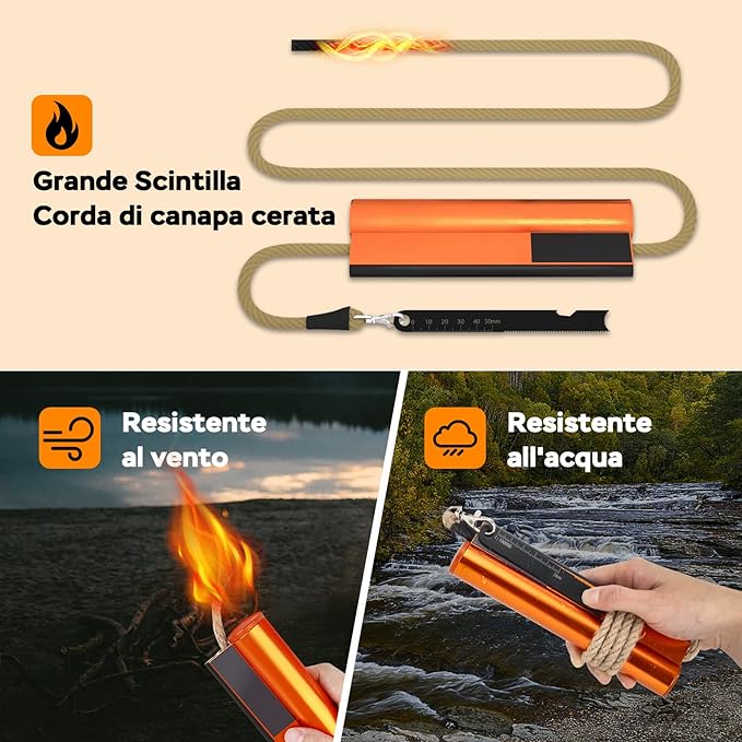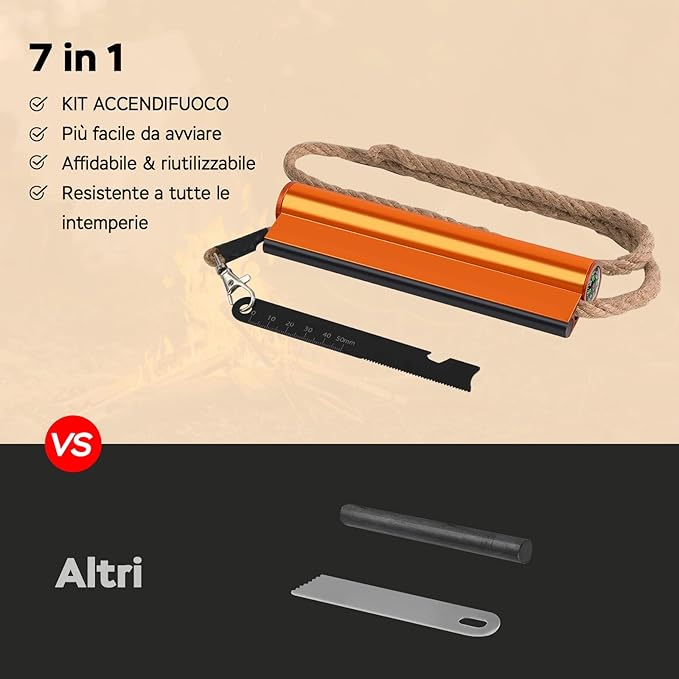 - Included Components : Flint and Steel Fire Starter Kit 7-in-1, Rope