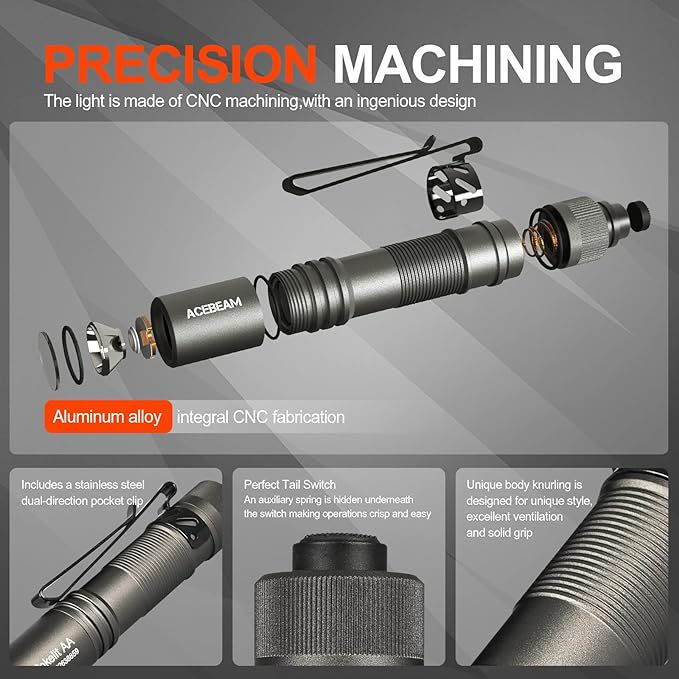 - Super Bright Flashlight: Pokelit AA edc flashlight Adopted high performance LED and a cool white 6500K color temperature,with a max output of 1,000lumens, and a 105 meters beam distance.