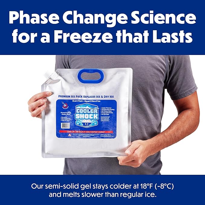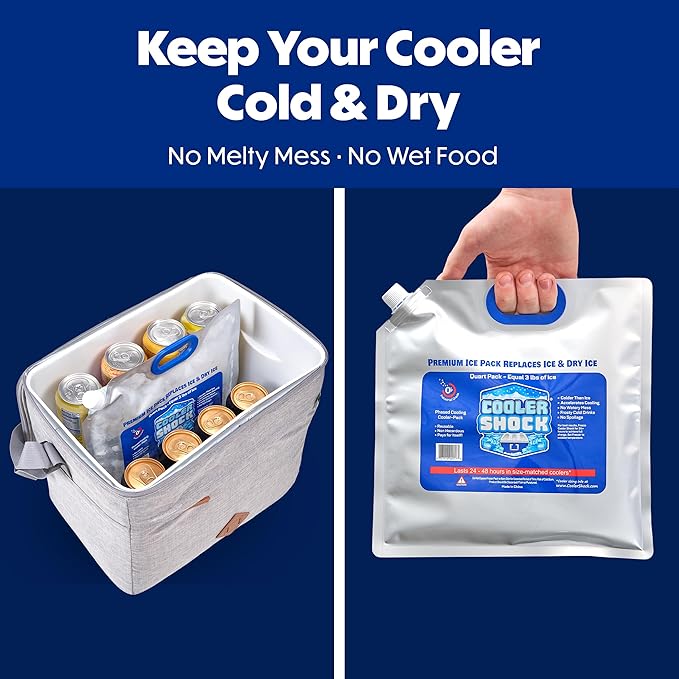 Cooler Shock Reusable Ice Packs for Cooler - Long Lasting Cold Freezer Packs for Coolers and Lunch Boxes - Cooler Ice Packs for Camping Gear, Fishing, Road Trips, Beach Must Haves