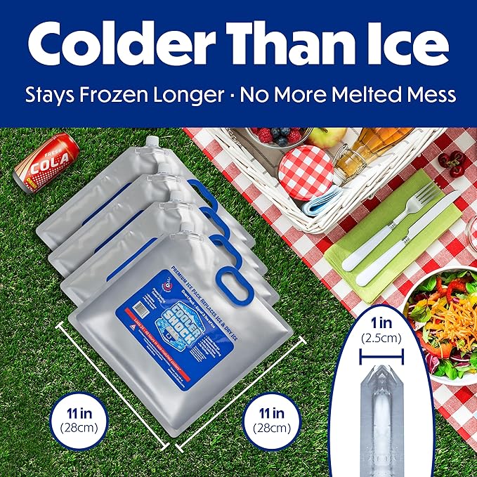 Cooler Shock Reusable Ice Packs for Cooler - Long Lasting Cold Freezer Packs for Coolers and Lunch Boxes - Cooler Ice Packs for Camping Gear, Fishing, Road Trips, Beach Must Haves