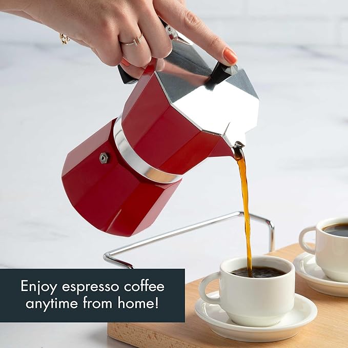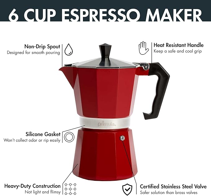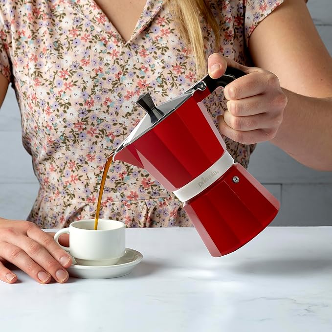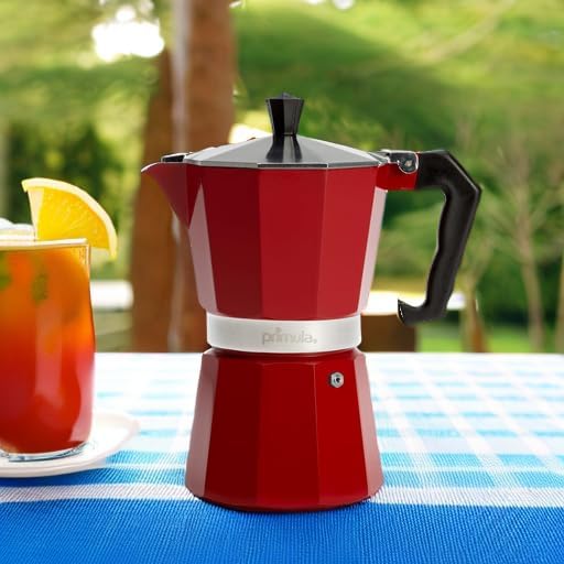Primula Classic Stovetop Espresso and Coffee Maker, Moka Pot for Italian and Cuban Café Brewing, Greca Coffee Maker, Cafeteras, 6 Espresso Cups, Red