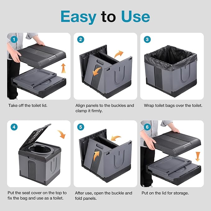 - 【USE IT ANYWHERE】: Functional cover design, No more worries about offensive odors. It is not only a perfect portable toilet for camping, hiking, long trips, fishing, boating, traffic jam etc, but also a good travel potty for adults and kids.