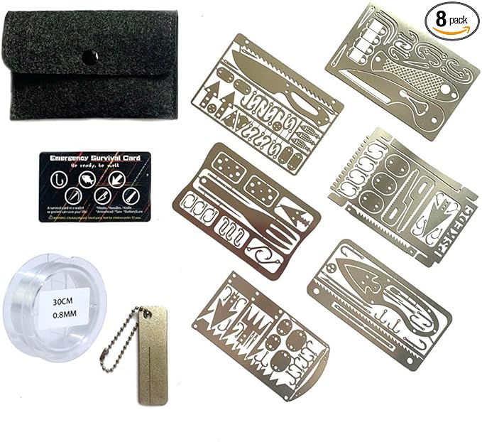 8Pcs Survival Cards Multi-Functional Tool Card Emergency Camping Tool EDC Kit in Your Walletcard with Fishhook Fishing Line,Survival Guide Multitool Camping Gear for Outdoor Hiking Hunting