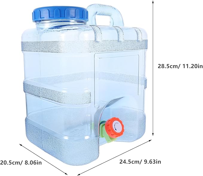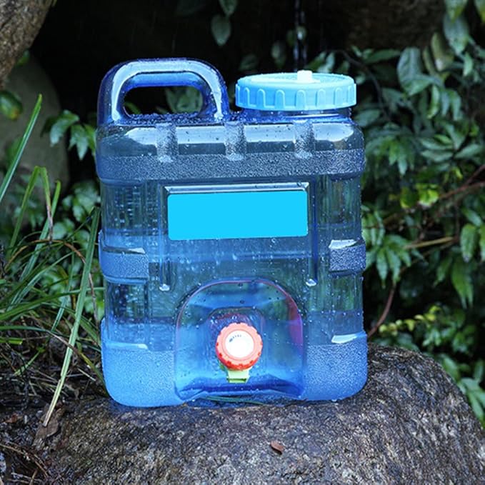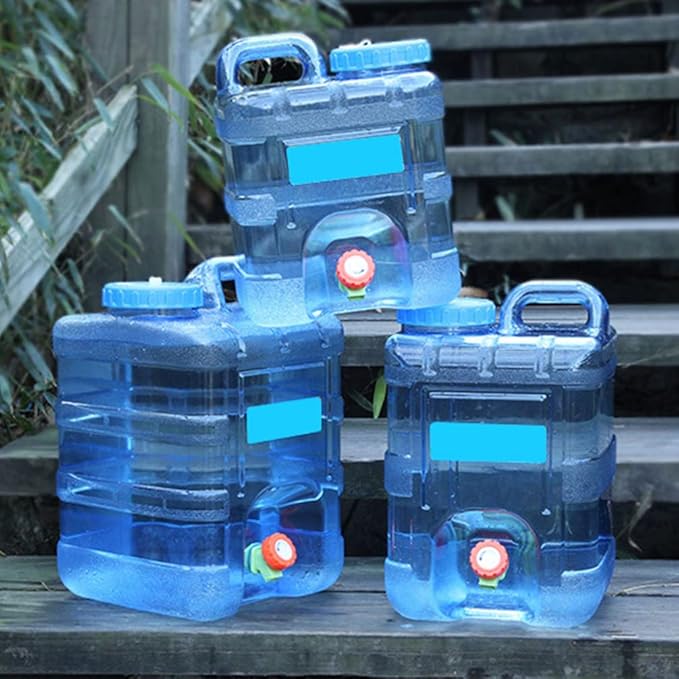 - -The handle of the bucket is very strong, so it is easy to carry. Large bottle mouth, easy to fill and pour water. Suitable for storing water in outdoor campsites, or storing it in the trunk of your car for backup during self driving trips. Or as a storage container for emergencies.