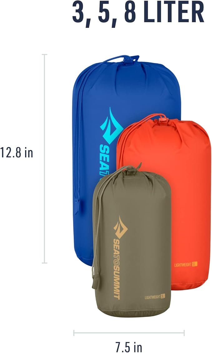 - Includes three stuff sacks: 3 Liter, 5 Liter, and 8 Liter