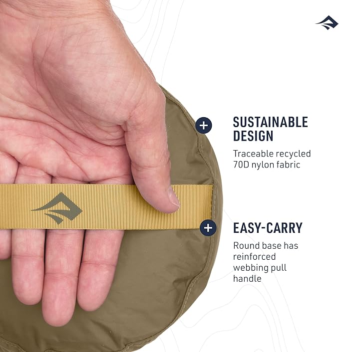 - Round base has a reinforced webbing pull handle for easy carry; seams are double stitched and reinforced at stress points for added strength and durability