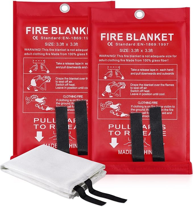 - 🔥【Multi-purpose】: Fire blanket kitchen has a variety of uses, when the object fire you can quickly cover the blanket to stop the spread of fire, you can also cover it on your body to prevent injury, fire blanket for car cover, camping kitchen, car camping, camping grill, car shelter, campfire grill.Of course, the fire blanket can only put out small fires, such as a large fire, please you promptly call the police.