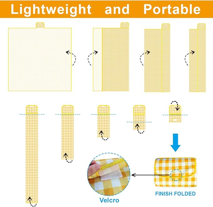 - 【Easy to Fold and Clean】 Fold and roll up the waterproof picnic blanket easily within 1 minute.This picnic blanket is super easy to clean due to its durable and waterproof backing. Easily shake & wipe off dirt, mud, wet grass, and beach sand. You could wipe or and rinse with water and dry them.