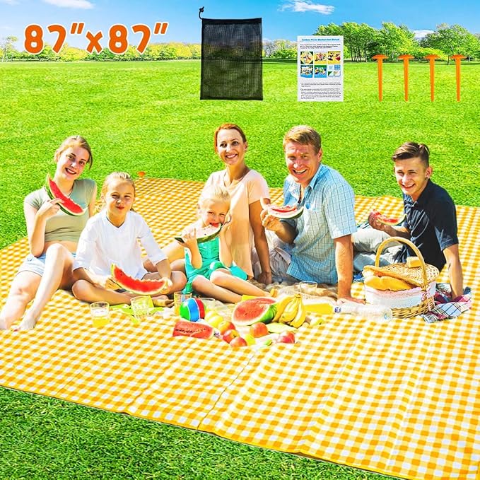 ZHUYNXIR Extra Large Picnic Blanket, 87x87 inch Waterproof Picnic Blanket, Gingham Picnic Mat for Beach, Camping Grass Picnic Blankets.