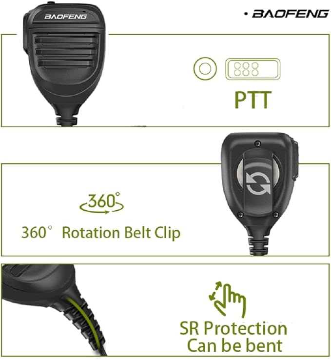 BAOFENG UV-9RPlus Ham Radio Mic SQ26W SQ27K IP57 Waterproof Remote Shoulder Mic Handheld for GMRS Two Way Radio UV-9RPRO UV-9G UV-XR