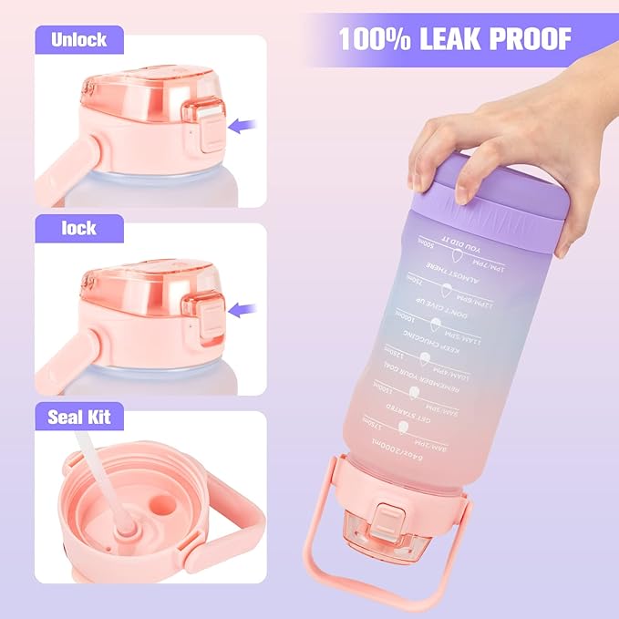 - Leakproof Design: The water bottle is made with a BPA-free Tritan material and comes with a lid that ensures spill-proof sipping.