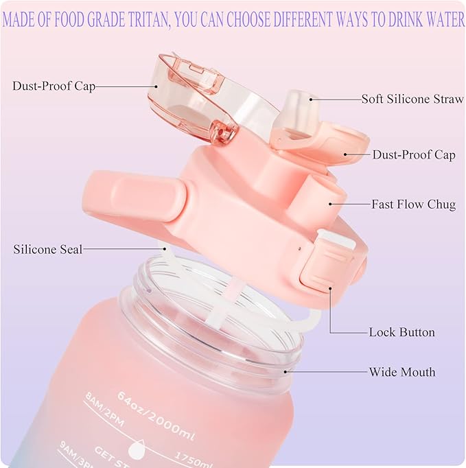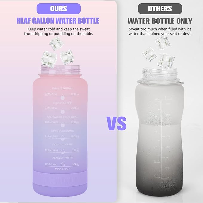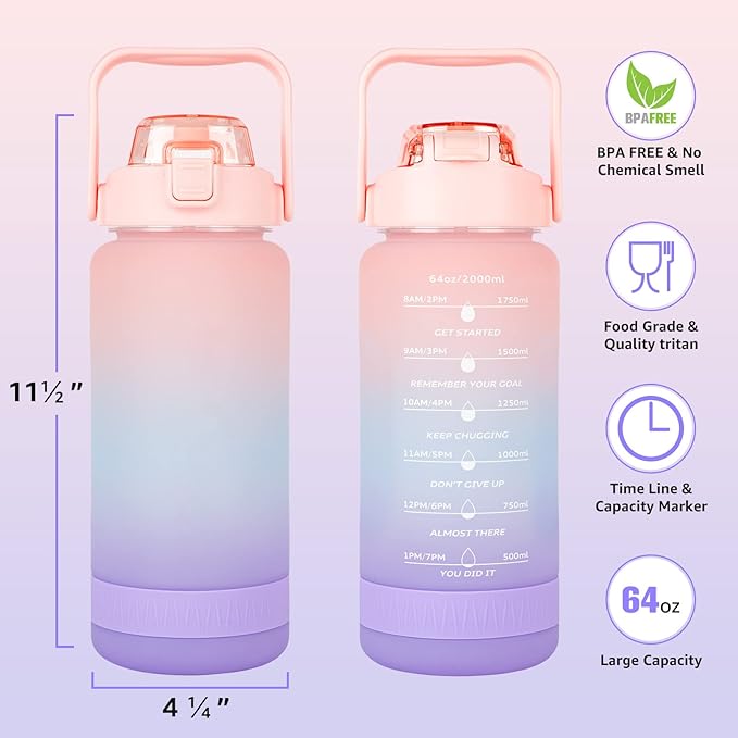 - Large 64oz Capacity: The half-gallon water bottle has a large 64oz capacity to keep you hydrated throughout the day.