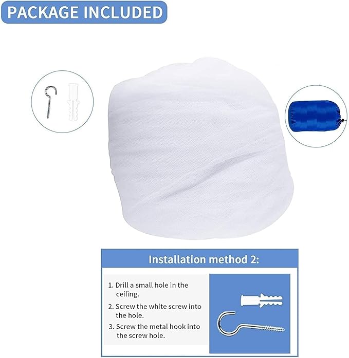 - 🌙 Two Easy Way to Set Up: 1.The 1 point hanging system allows for easy setup, no piercing needed to install, just stick hook to the ceiling. 2. you need to perforate to install. you can choose the way what you want. Make it easy for you and your family to be protected.