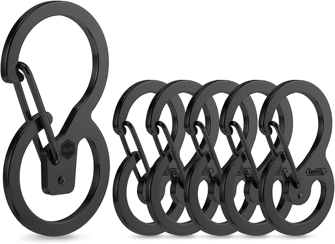 - 8 Shaped keychain:Made from durable 420 stainless steel, stronger and more competitively priced than titanium. The Key Carabiner Clip has a simple design to prevent key loss
