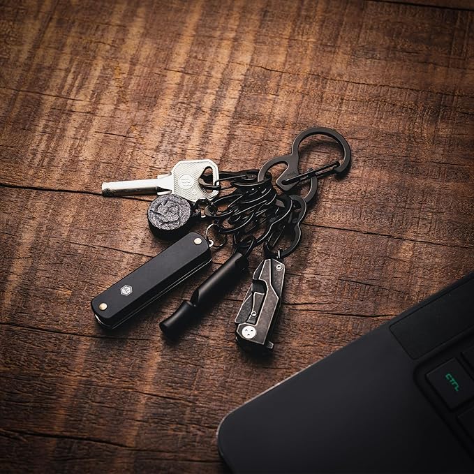 KeyUnity Stainless Steel Carabiner Mini Clips, Key Holder Organizer Keychain for Keys, Flashlight, Folding Knife & Whistles