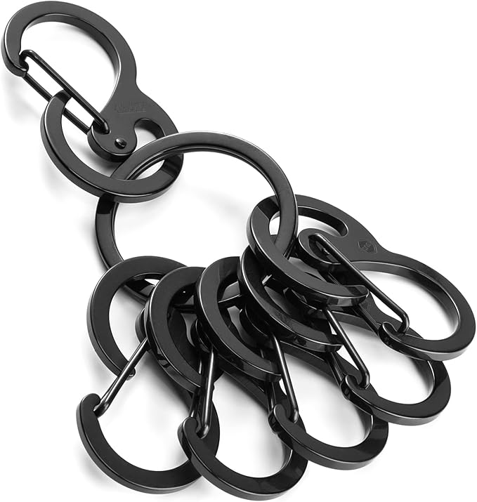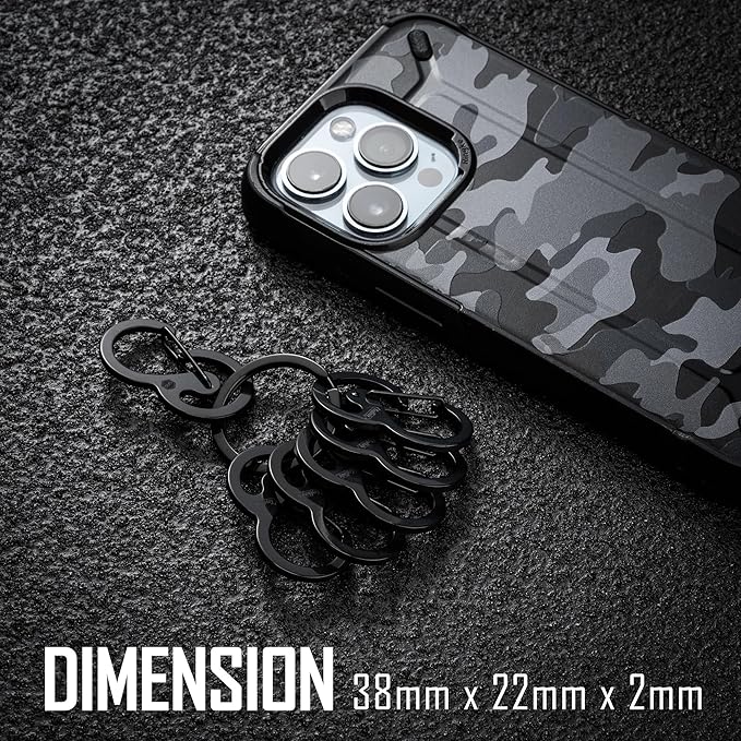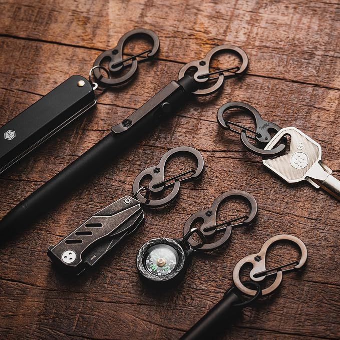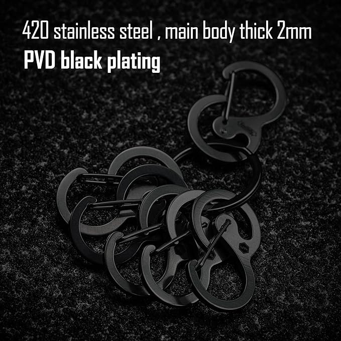 - Made of superior durable 420 stainless steel, stronger and more competiive price thantitanium material; The Key Carabiner Clip exterior appearance shape is simple, just like Arabic numeral 8, whicheffectively prevent keys from being lost