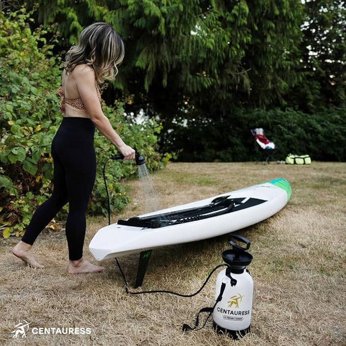 - Stable Base Design: Our portable shower for camping features a unique bowl bottom base for enhanced stability on uneven surfaces. Enjoy hassle-free outdoor camping showers without worrying about tipping over, even on challenging terrains. Add this portable water pump to your camping gear and use it with your portable sink for easier dishwashing at campgrounds.