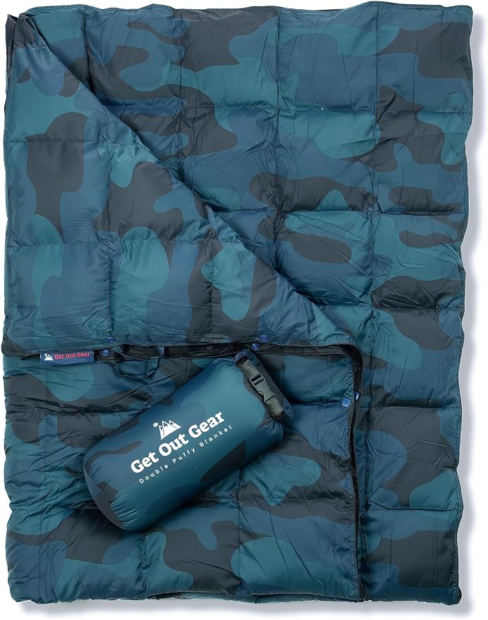 Down Camping Blanket - Puffy, Packable, Lightweight and Warm | Ideal for Outdoors, Travel, Stadium, Festivals, Beach, Hammock | 650 Fill Power Water-Resistant Backpacking Quilt