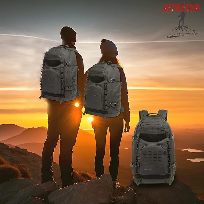 • 38L Large Capacity Backpack: ALFREVER tactical backpack measures 22" x 13.5" x 8", capacity: 38L. Large capacity assault bag, allowing you to carry all your tactical gear.