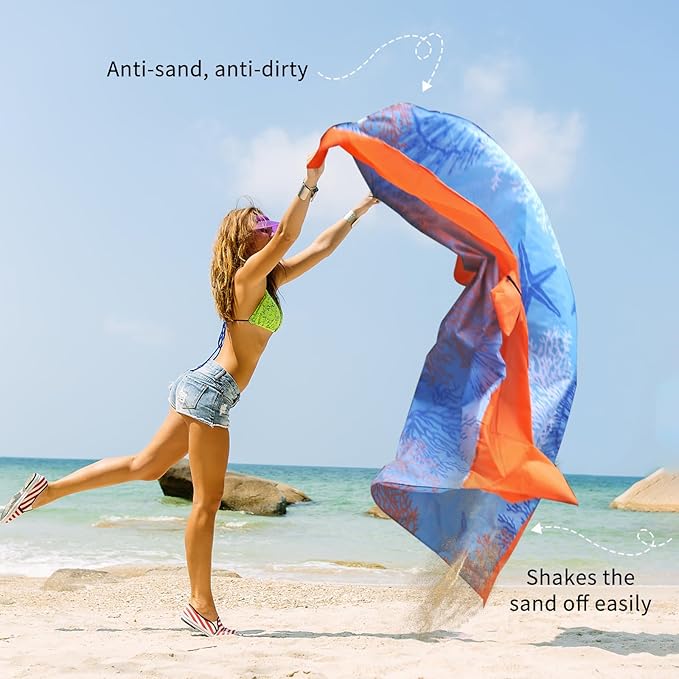 - [Multifunctional Use] Beach blanket also can be used as a picnic mat, emergency pad etc., for outdoor camping, hiking, fishing, park, beach. Special and bright patterns can also bring you a good mood, enjoy the sunshine and gentle breeze with your friends or family.