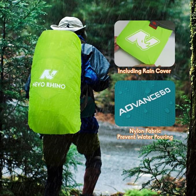 N NEVO RHINO Waterproof Hiking Backpack 50L/60L, Camping Backpack with Rain Cover, Hiking Travel Mountaineering Backpack