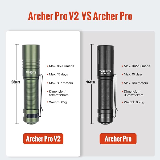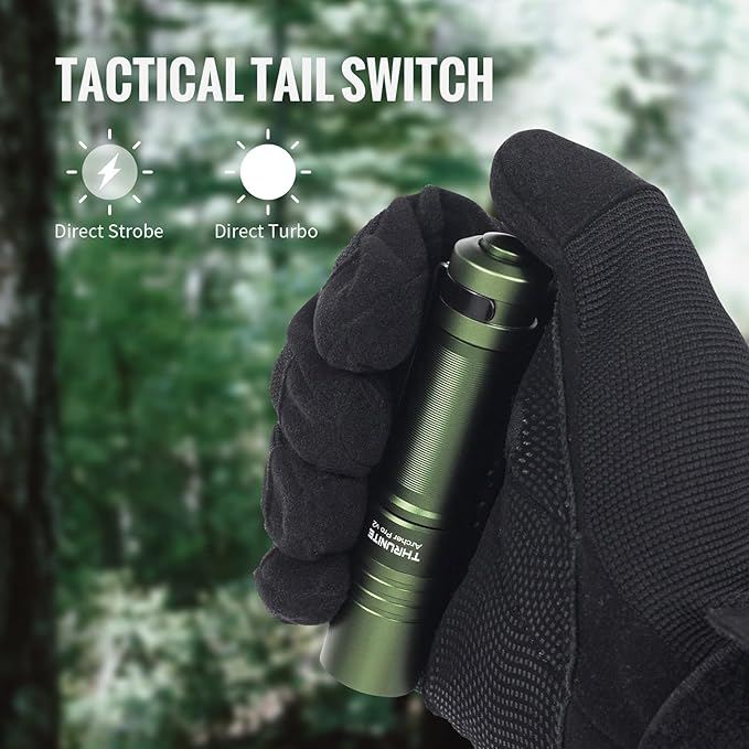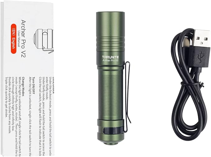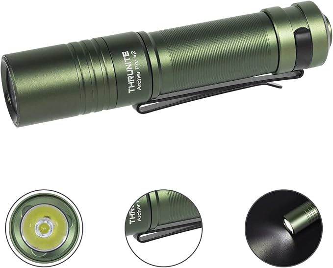 ThruNite Archer Pro V2 EDC Flashlight - 950 Lumens, USB-C Rechargeable, Tail Switch LED Penlight for Camping, Outdoor & Emergency - Cool White (Dark Green)