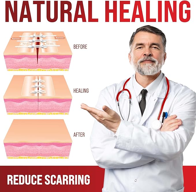 - REDUCE SCARRING — Unlike traditional stitches, butterfly closure bandages thanks to their non-invasive technique go without any punctures. In this way, by using MyHelp laceration kit the chances of infection are reduced, and the formation of scarring is minimized.