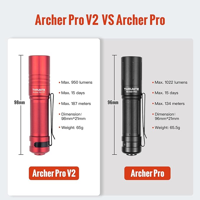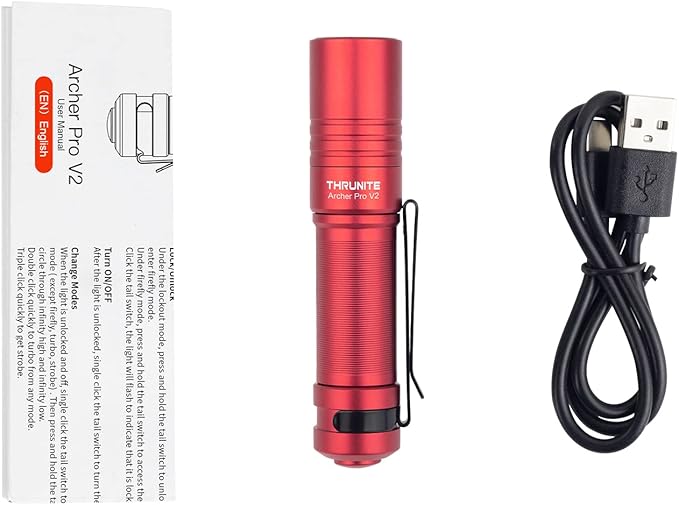 ThruNite Archer Pro V2 EDC Flashlight - 950 Lumens, USB-C Rechargeable, Tail Switch LED Penlight for Camping, Outdoor & Emergency - Cool White (Red)