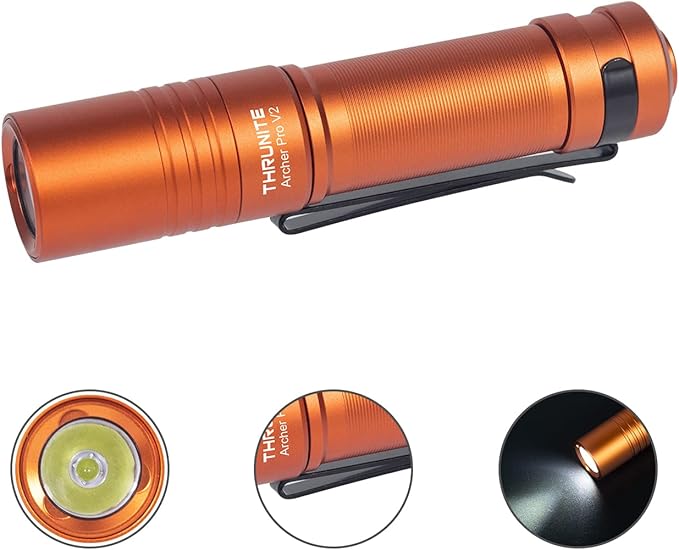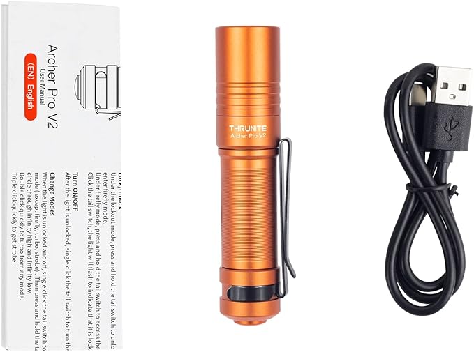 ThruNite Archer Pro V2 EDC Flashlight - 950 Lumens, USB-C Rechargeable, Tail Switch LED Penlight for Camping, Outdoor & Emergency - Cool White (Orange)