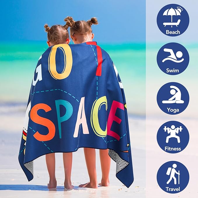 2 Pack Microfiber Beach Towel, Kids' Microfiber Pool Towel 58”x 28”, Sand-Free Beach Towel, Quick Drying Camping Towel, Super Absorbent Bath Towel Blanket, Soft Breathable and Lightweight